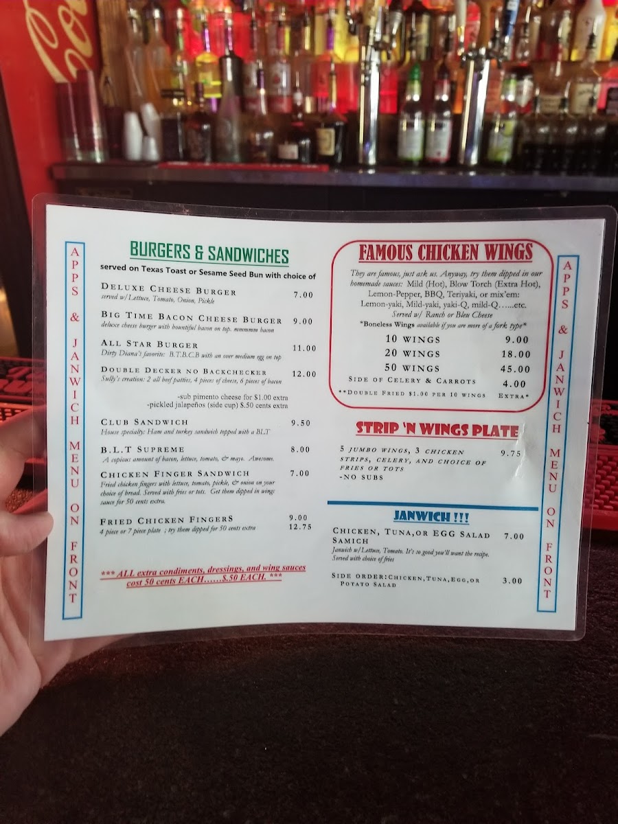 This menu is structured to support a casual, quick-order dining experience with a focus on classic bar and grill fare, suitable for lunch, dinner, or late-night meals.